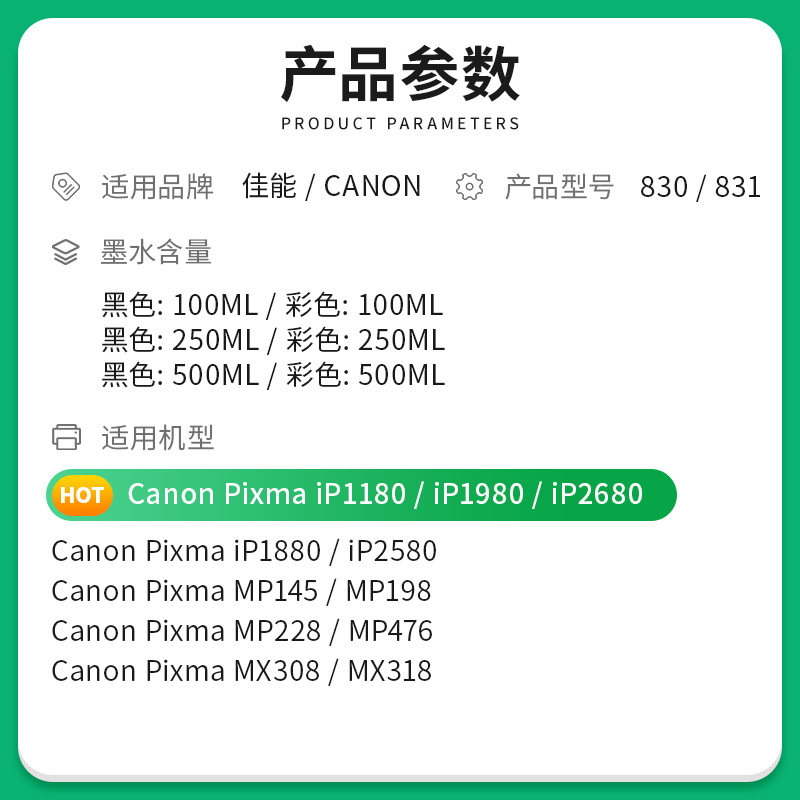 Applicable Canon ip1180 mp198 mp198 ip1880 pg830 pg830 printer MP145 476 mx318 30