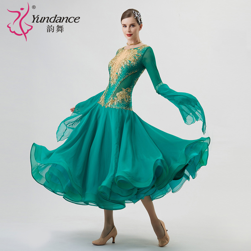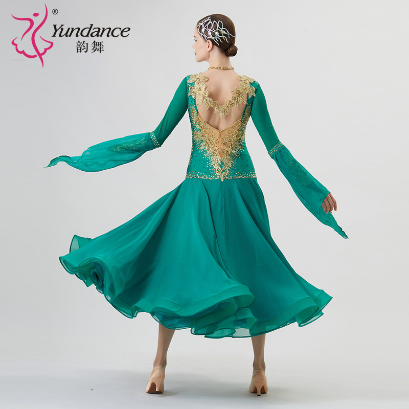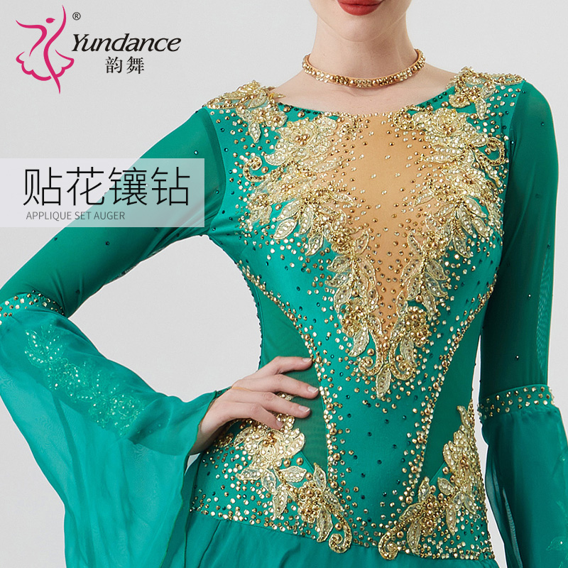 Design a custom yundance rhyme dance national standard Morden Dance Table Performance Competition Costume Bronzing with a large pendulum one-piece dress-Taobao