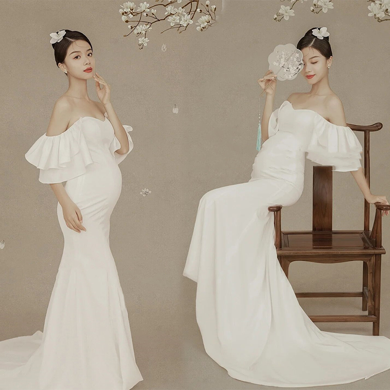 Pregnant Woman Photographed Clothing Shadow Building New Style Retro Oil Painting Wind Advanced Sensational Smear Long Skirt Dresses Art Photography-Taobao
