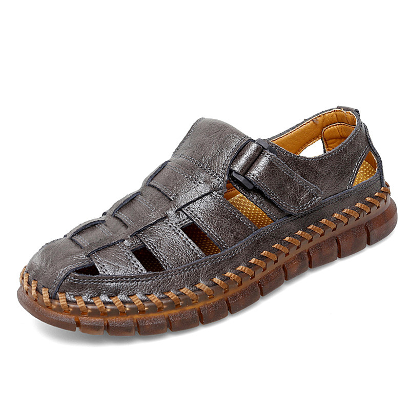 Foreign Trade Outlet Italian Original Single Withdrawal Cabinet Genuine Leather Men Shoes Softbottom Trendy 100 Hitch Cave Shoes Big Code Baotou Sandals-Taobao