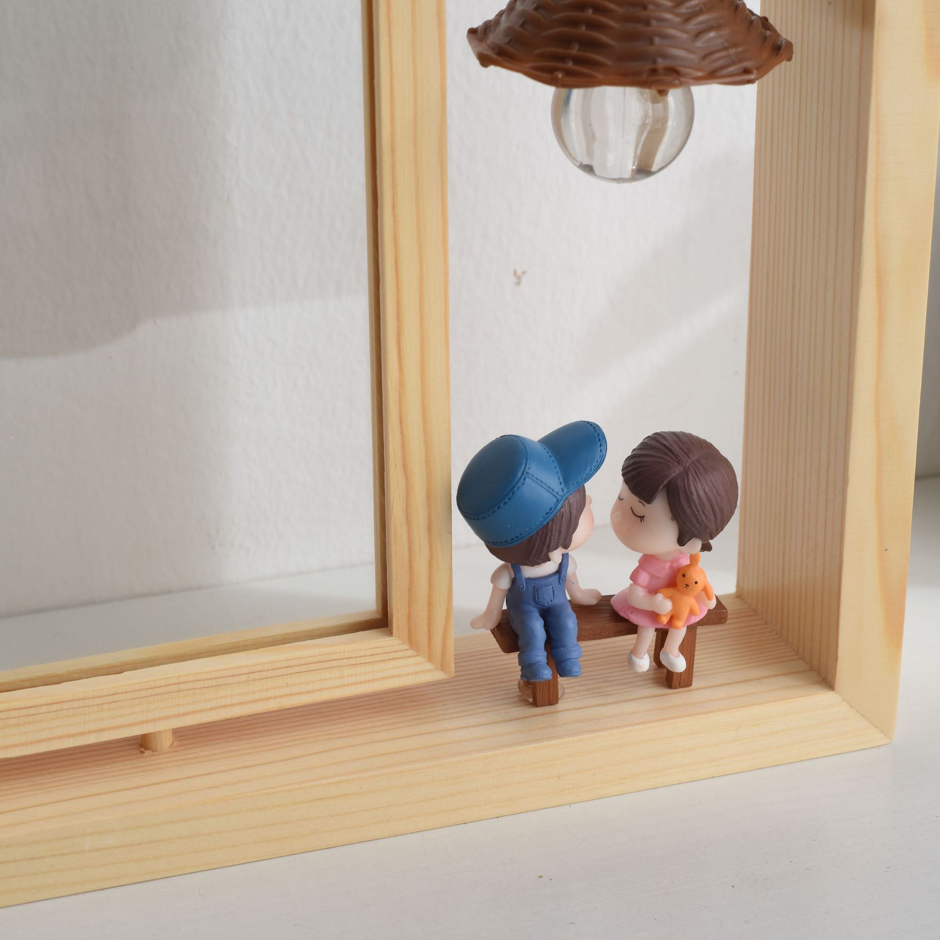 Wooden Rotating Photo Frame Double-sided Rotating Couple Photo Frame Ornament 6 Inch Pine Wooden Photo Frame Desktop Set Birthday Gift