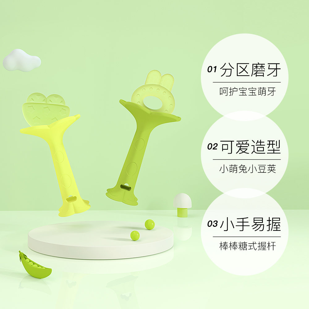 Small cute rabbit grindstone (green) small bean pods grinding tooth stick (yellow)