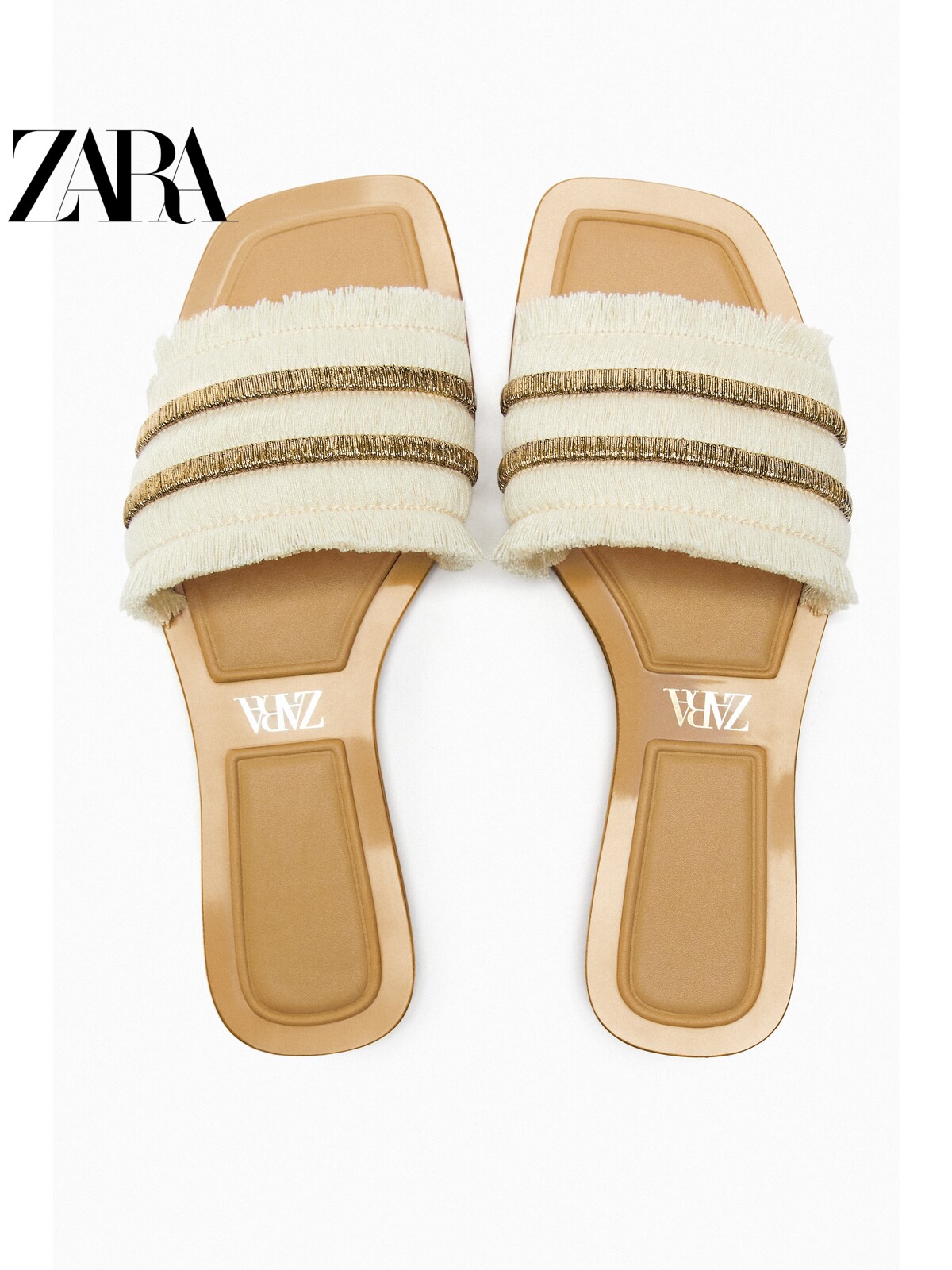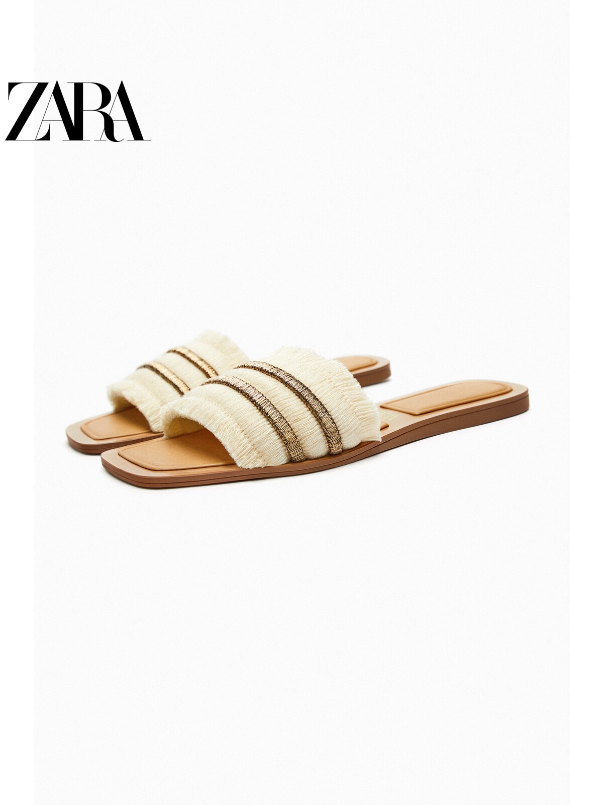 ZARA Discount Season TRF women's shoes brown current Sudecorated flat bottom sandals slippers 3810110716-Taobao