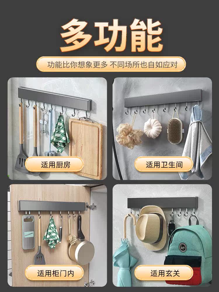 Gun grey kitchen free kitchen hanging rack spoon shovel shelf hook hanging bar wall hanging multi-function