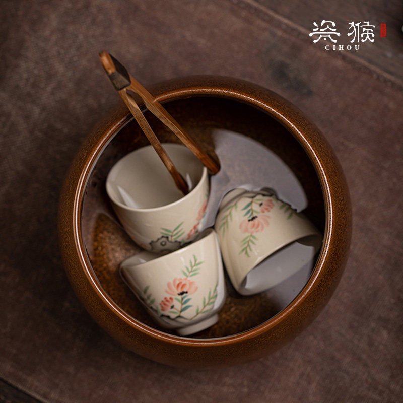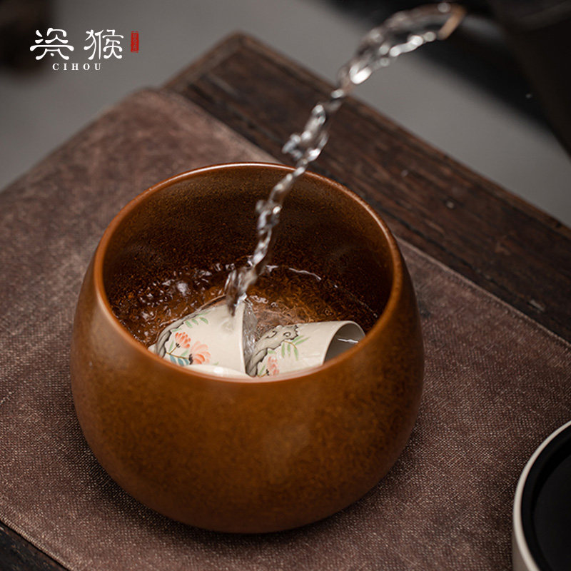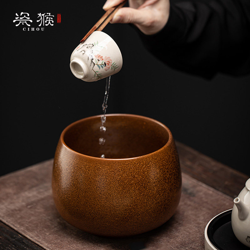 High-end tea washing tea residue cylinder ceramic building water small large size water pelvis waste water barrel ashtray tea set accessories tea water cylinder-Taobao