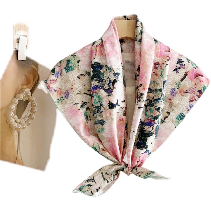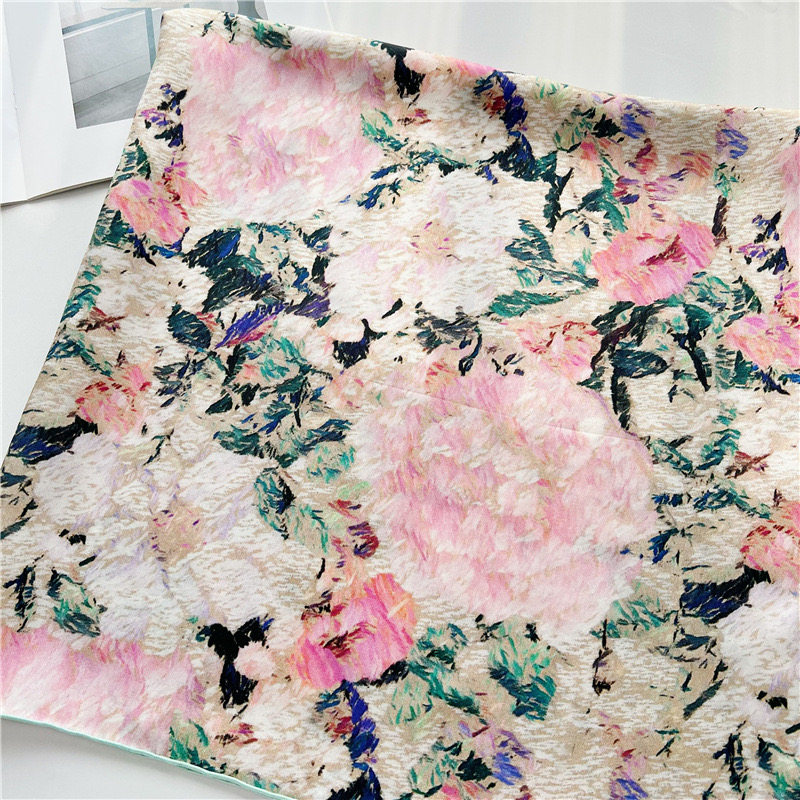 Silk - inclined silk retro French painting 14 mm large square towel spring - autumn silk silk scarf female shawl scarf