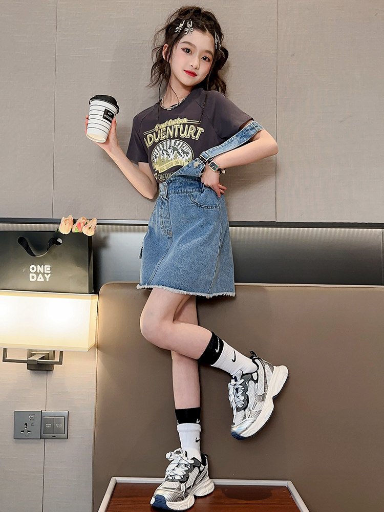 Blue Blue 2108 is small in size Green 2108 is small in size Blue strap skirt Short-sleeved Green strap skirt Short-sleeved Blue top Labeled denim strap skirt