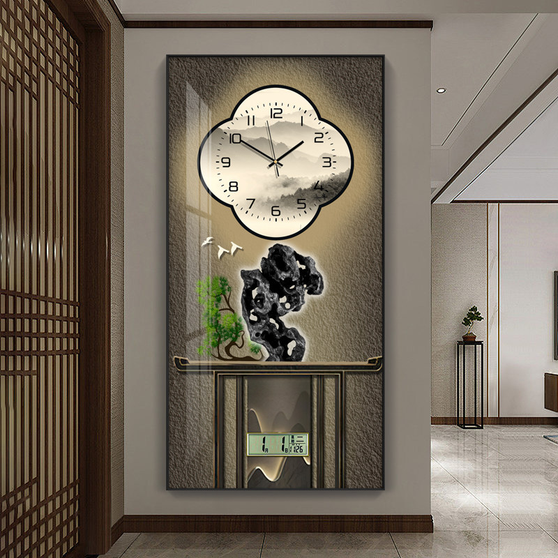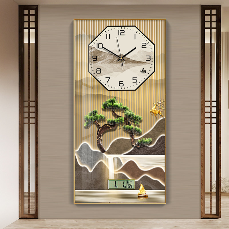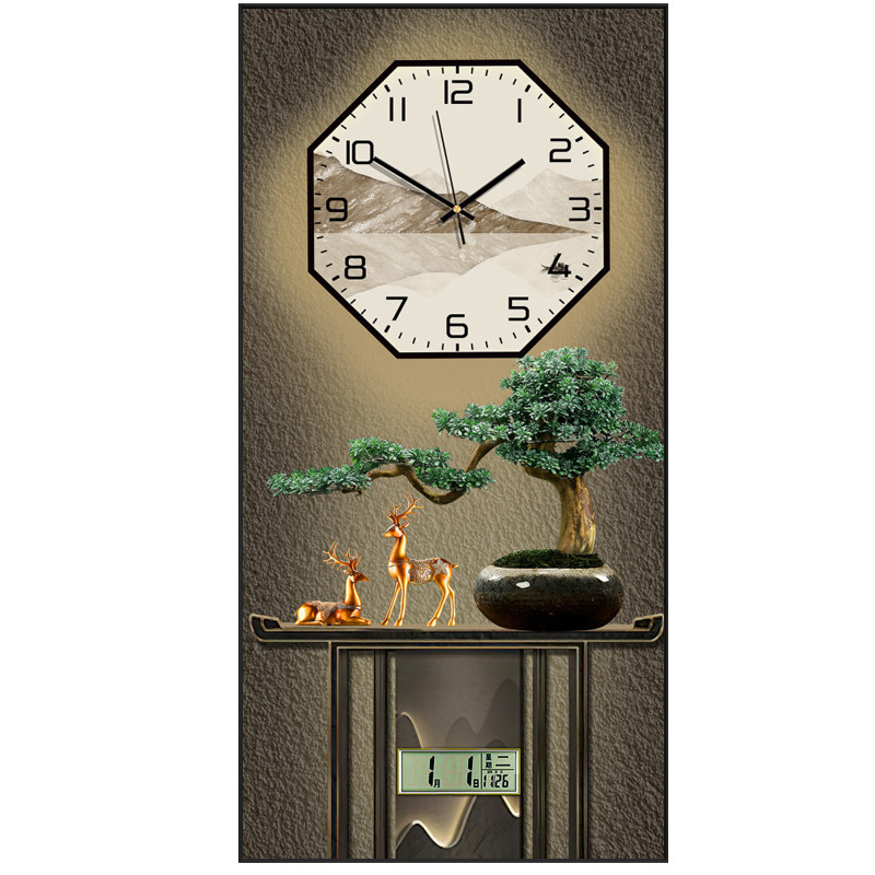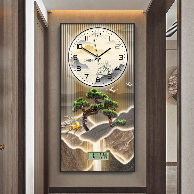 Modern light extravagant welcome guest pine gold deer with calendar fashion clock hanging belling-room dining room restaurant decoration painting table hanging wall clock-Taobao