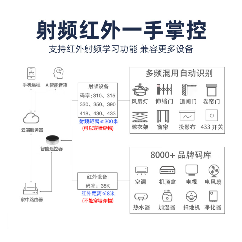 Radio frequency infrared universal remote control (graffiti smart app) universal infrared remote control (graffiti intelligence) Bring your own temperature and humidity universal infrared remote control (graffiti intelligence)