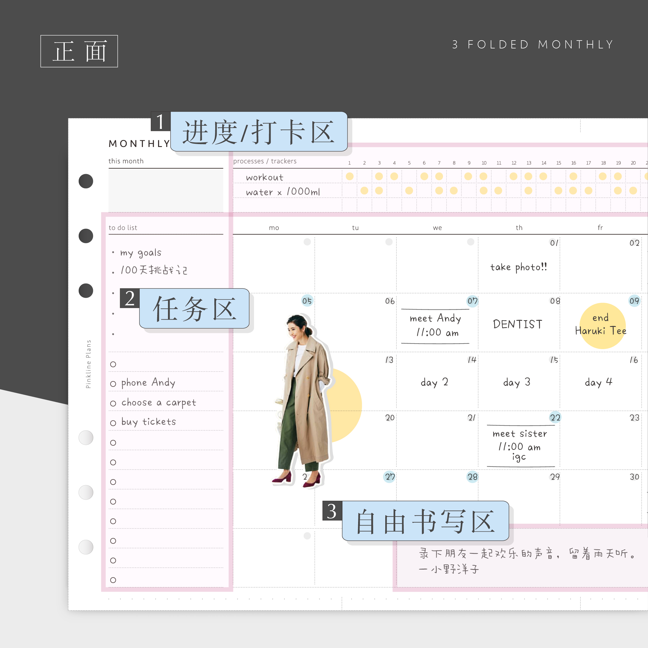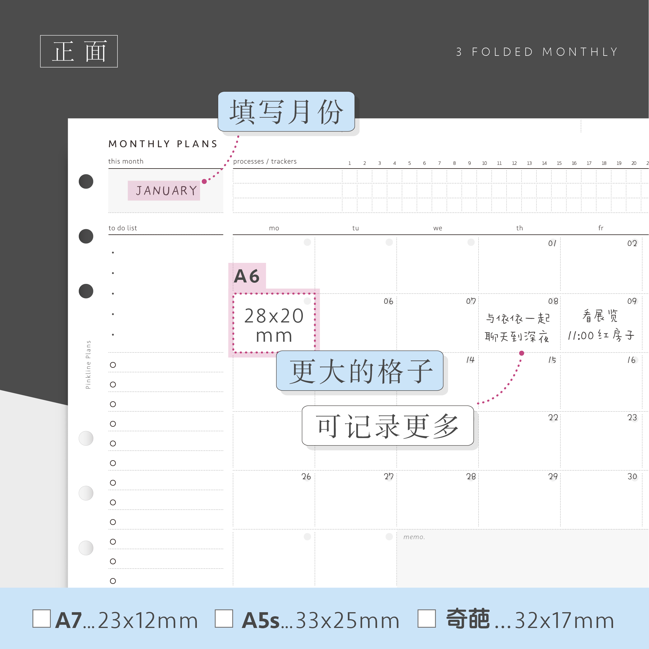 pinkline trifolios monthly plan loose leaf replacement inner core paper hand ledger this calendar A5slim67 chins-Taobao