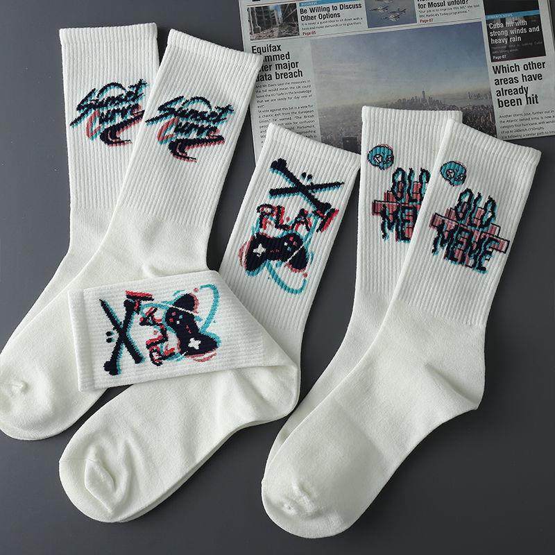 Graffiti Socks Mans Tide 100 Hitch High Face Value Middle Cylinder Fall Student Sports Basketball Socks Long Cylinder Tide Male Stocking-Taobao
