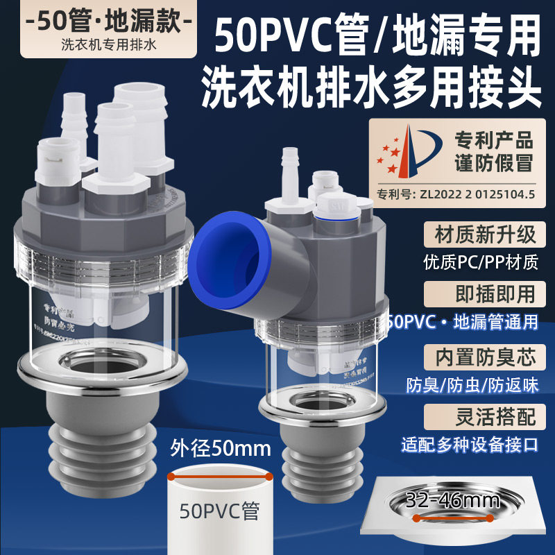 Washing machine launching tee Tee Balcony Floor Drain Special Joint Dryer Sweep Sweeper Human Drain Pipe Four-way Deodorant-Taobao
