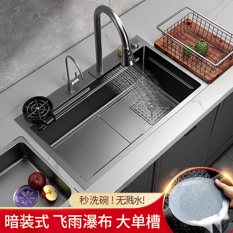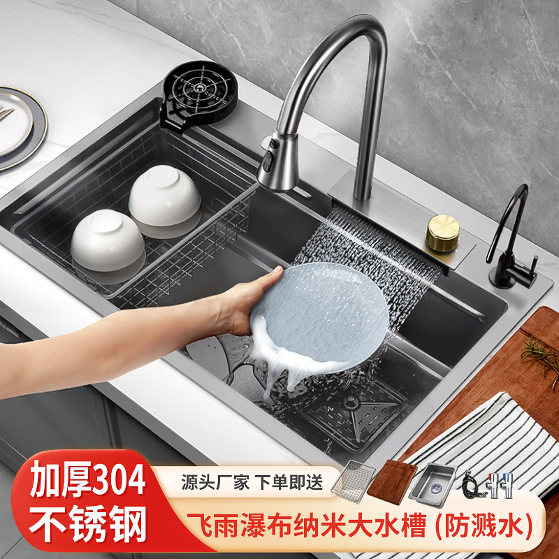 Flying Rain Falls Sink Large Single Tank Wash Vegetable Pool Dishwashing Pool Dishwashing Tank Stainless Steel Handcrafted Kitchen Wash Basin Home-Taobao