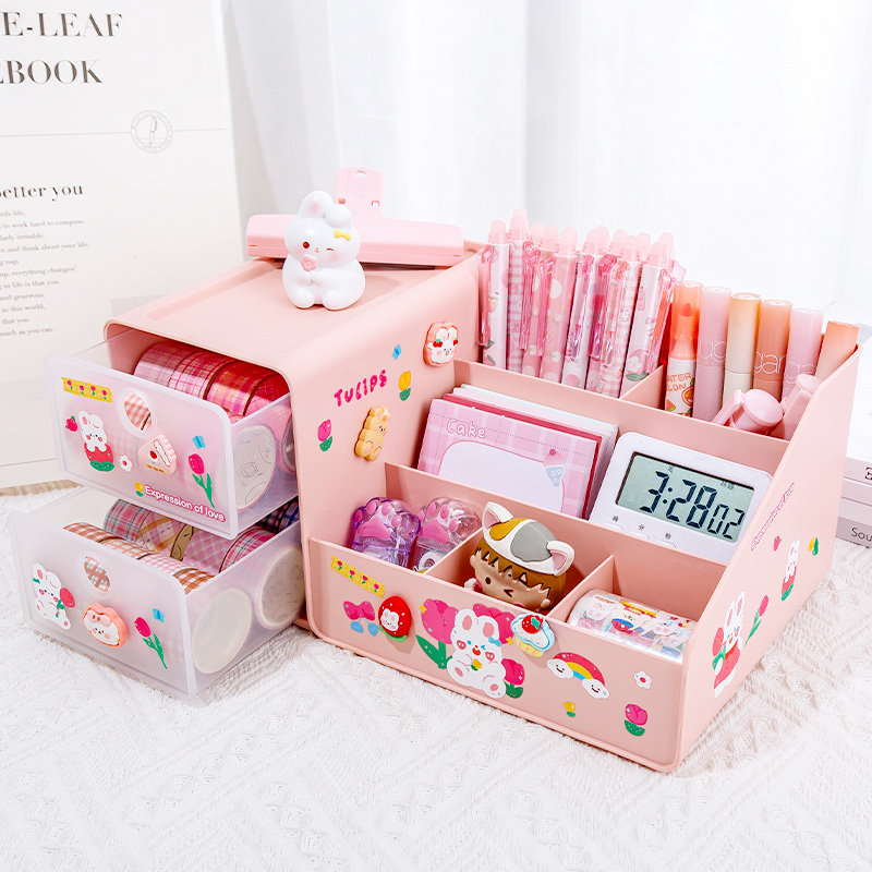 Drawer PEN HOLDER CHILDREN GIRL CUTE DESKTOP STATIONERY CONTAINING BOX LARGE CAPACITY GIRL DESK PEN BOX ELEMENTARY SCHOOL STUDENTS SPECIAL MULTIFUNCTION LOADING PEN BARREL PEN HOLDER INTEGRATED CREATIVE CARTOON OFFICE-TAOBAO