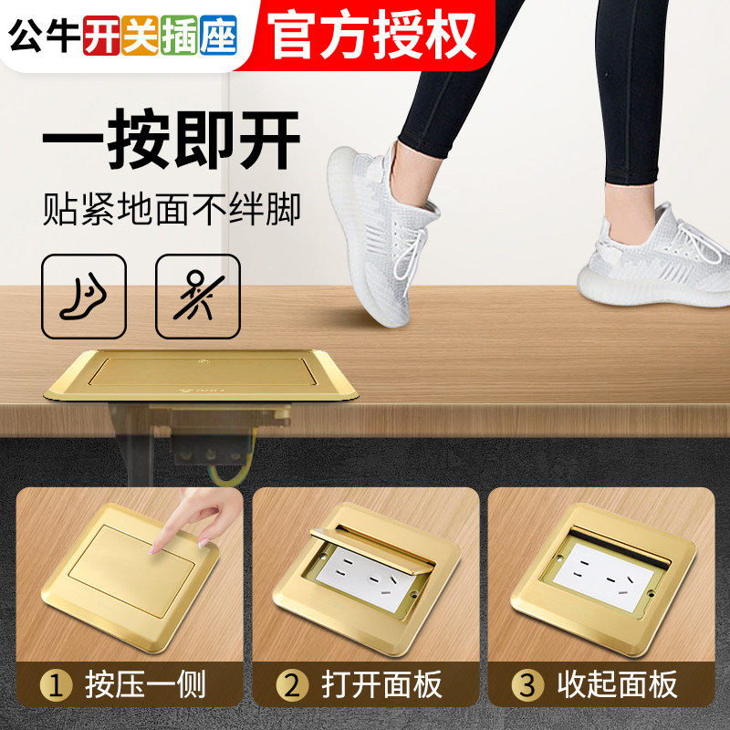 Bull ground socket full copper waterproof five-hole ten-hole computer multi-functional embedded invisible ground socket gd8