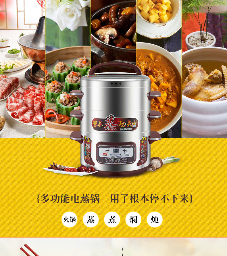 Multifunction computer version Intelligent electric steamer stainless steel three-layer large capacity electric steam cage home steam cooking electric hot pot-Taobao