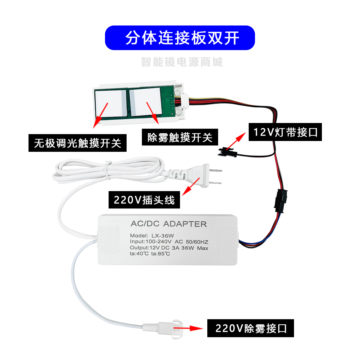 Smart Mirror Touch Switch Controller Bathroom room mirror Cosmetic Mirror Luminous Demisting Touch Sensing Switch Accessories-Taobao