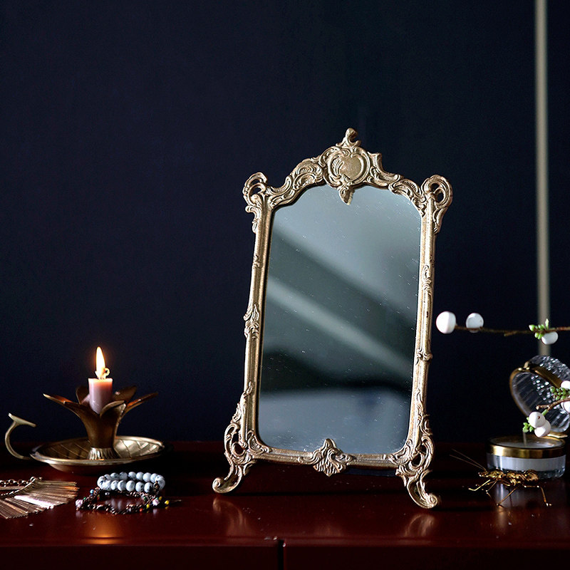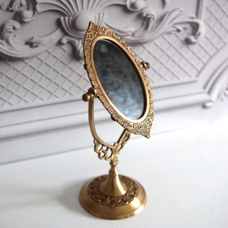 Imported Brass Cosmetic Mirror Restore Light Luxury Suite Bedroom Dressing Desk Decorated Copper Mirror Swing