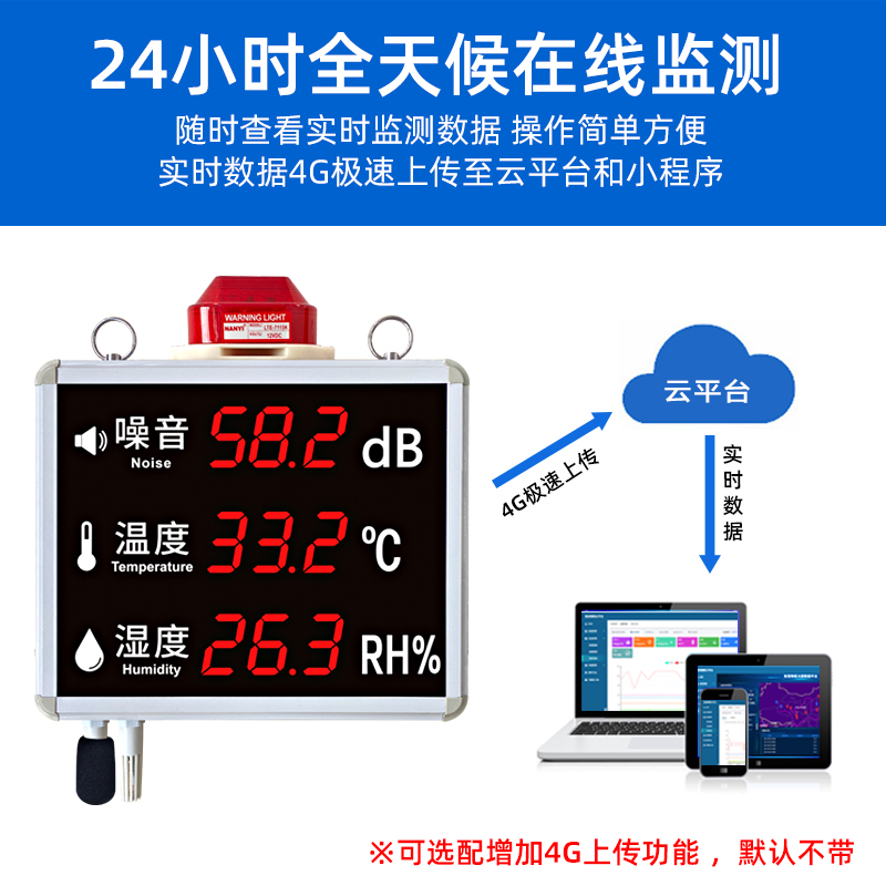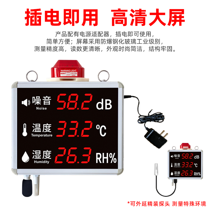 (standard version) noise temperature and temperature display instrument (485 output) noise temperature and temperature display instrument (4G version) noise temperature and humidity display instrument (sound and light alarm) noise temperature and temperature display instrument (4G sound)
