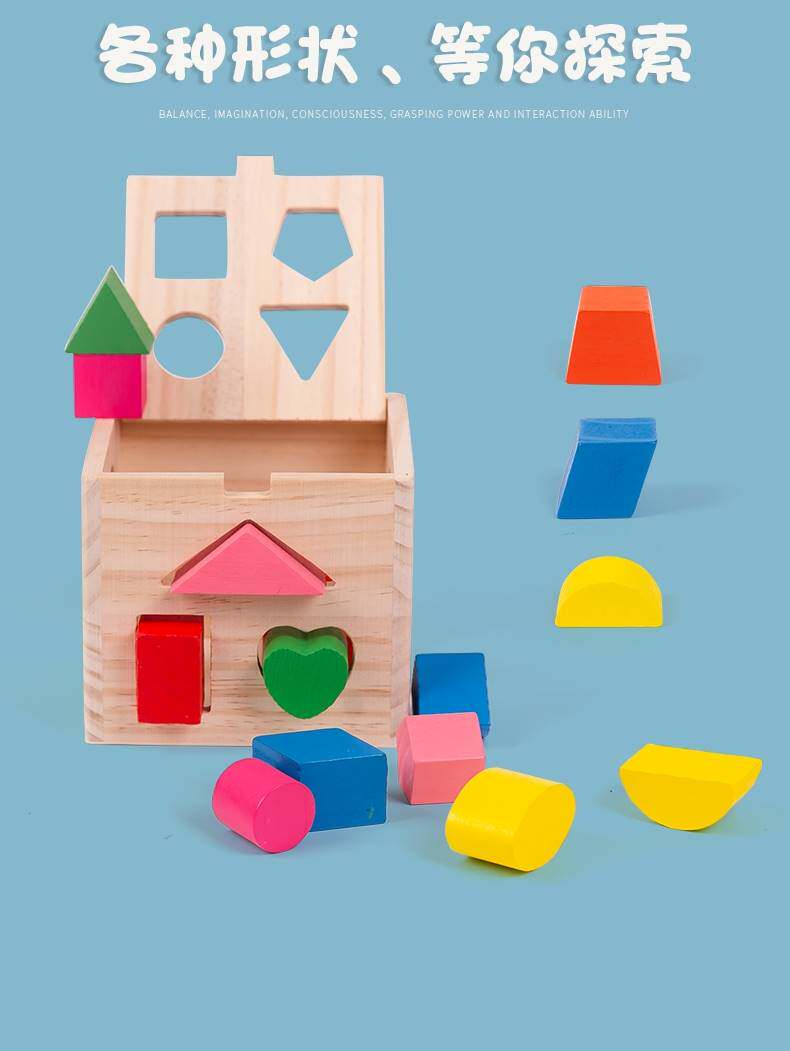 Montessori children's matching building blocks thirteen holes geometric puzzle shape box wooden kindergarten baby early education toys