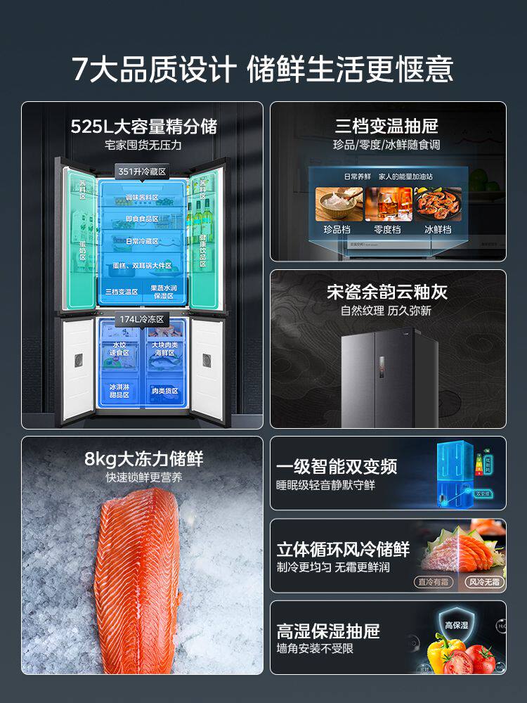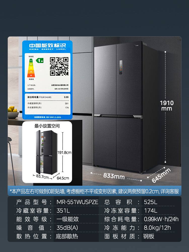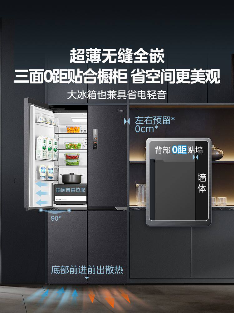 Beauty 551 Cross Pair Double Open Four Doors Ultra Slim Seamless Full Recessed Level Home Large Capacity Frost-free Refrigerator-Taobao