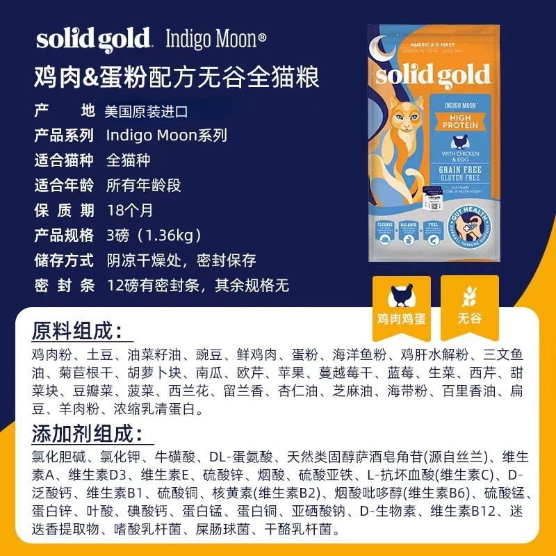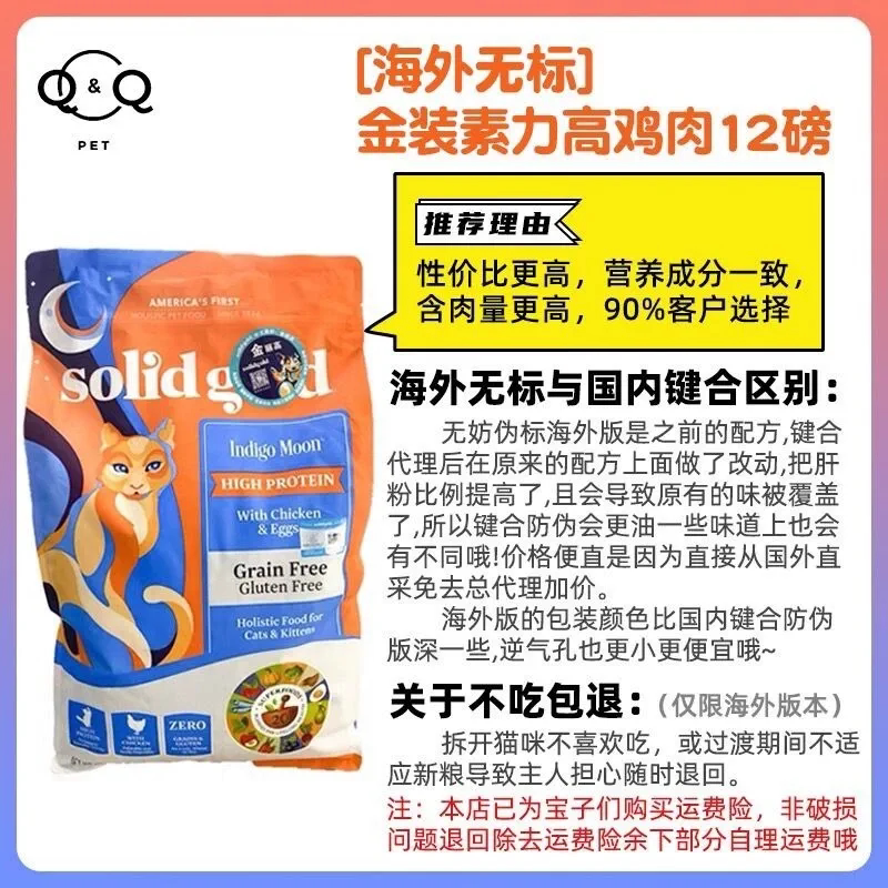 Solid Gold gold loaded imported vegan high without glukinin cat food as cat and young cat fatten blush hush egg-Taobao