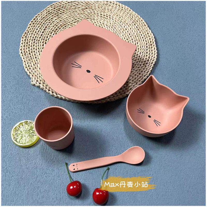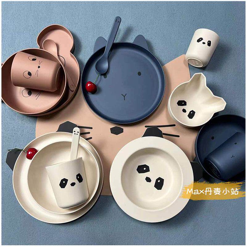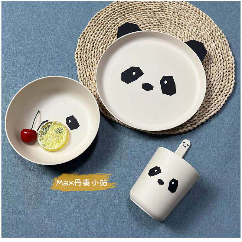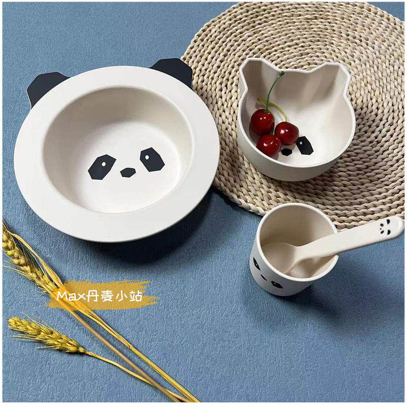 Overview of the 4-piece package of green rabbits spot with panda dining bowl spot with side powder kitten dining bowl with side mint green kitten food bowl spot gray rabbit plate 4 pieces spot powder old