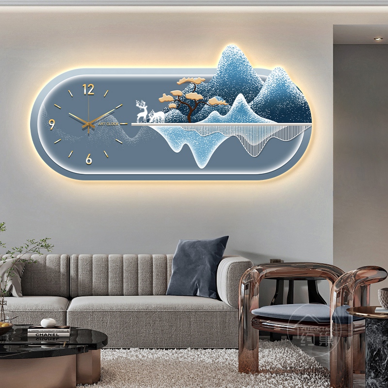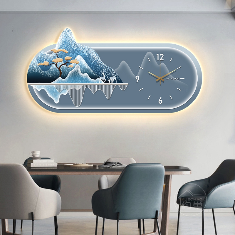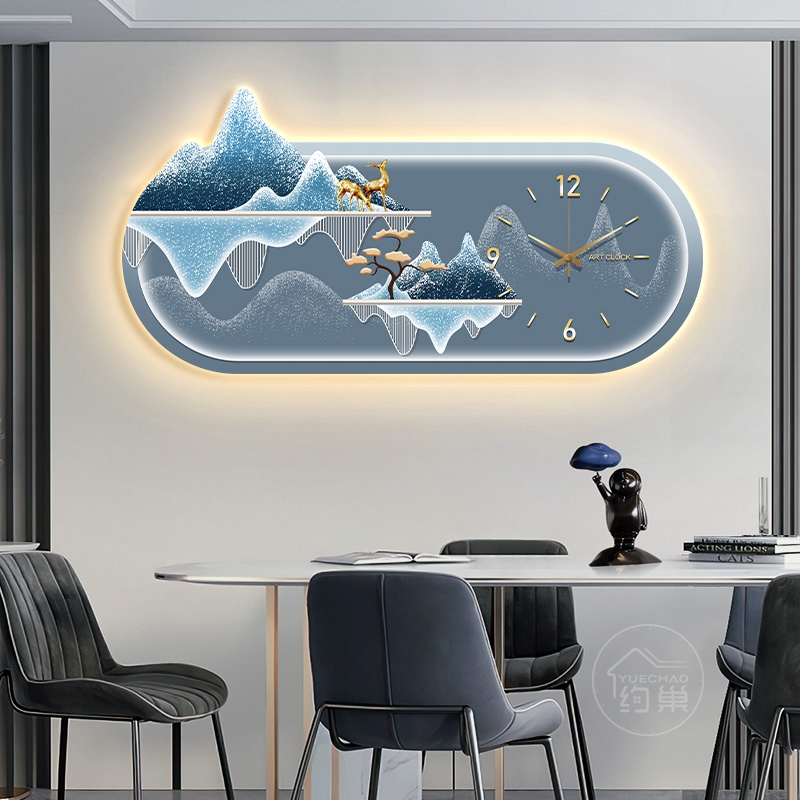 Modern light luxury restaurant decorative painting wall clock creative high-end living room home clock hanging painting led lamp painting high-end