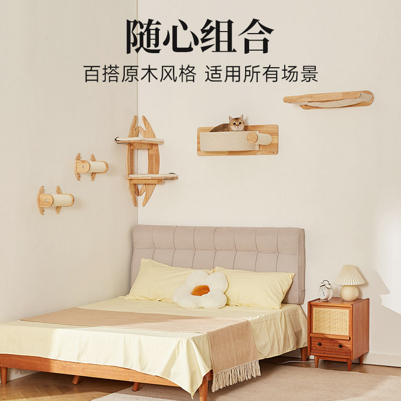 Veterinary Solid Wood Cat Climbing Wall-mounted Wall Cat Wall Cat Rack Wall-mounted Upper Wall Cat Nest Suction Cup Free glass-Taobao