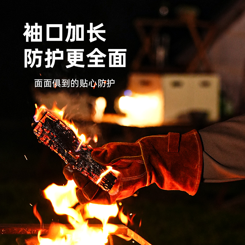 Original outdoor camping flame retardant heat insulation gloves thick wear resistant high temperature long picnic gloves