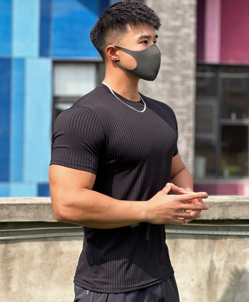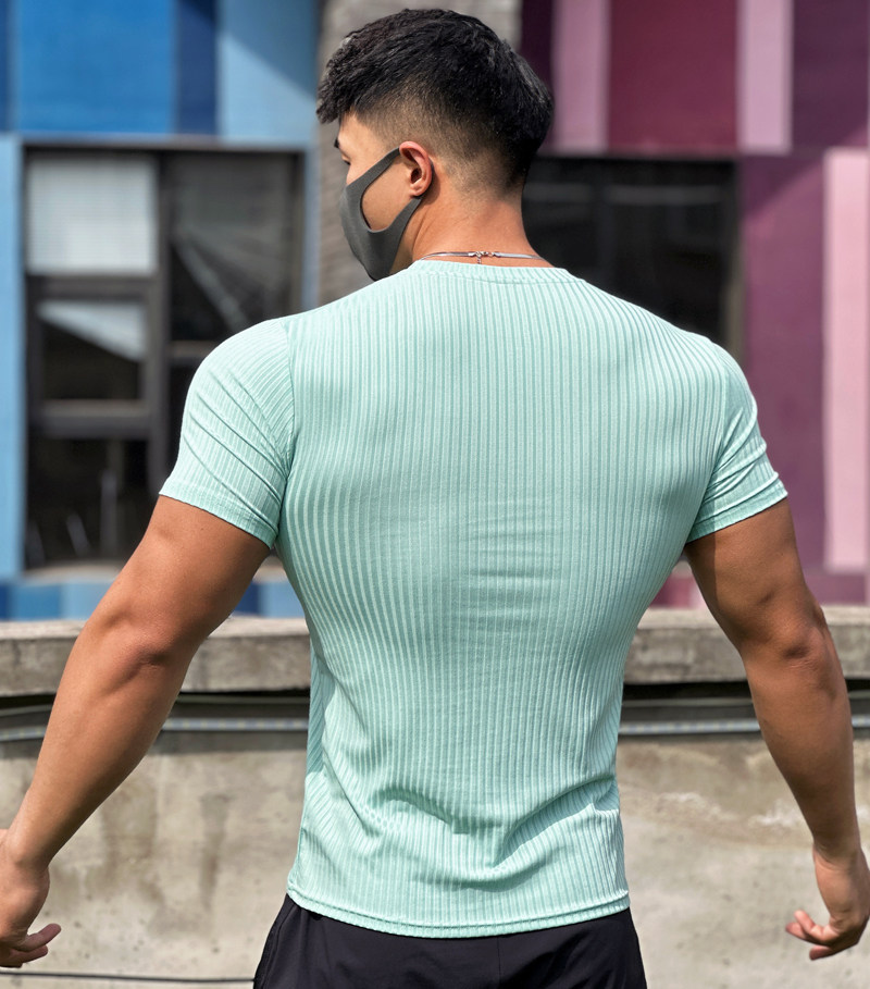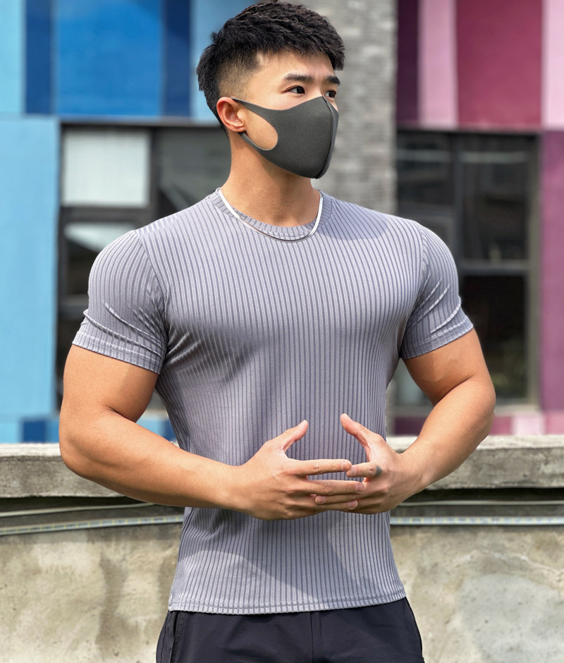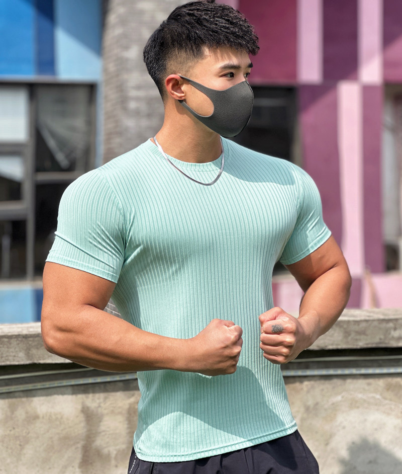 Tide brand striped solid color fitness short-sleeved men's basketball running training elastic quick-drying round neck sports T-shirt clothes