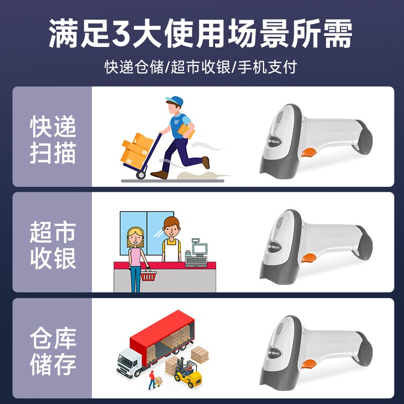 Morning Light High Precision Wireless Sweep Code Gun Barcode Scanner Supermarket Collections Silver Alipay WeChat Express Return Out of Inbound Collection Barcode Barcode Universal Thegod Instrumental Wired Handheld Bargun 9-Taobao