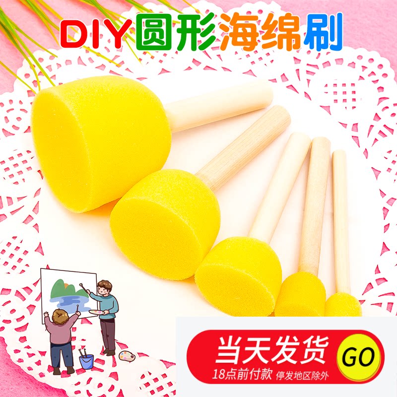 Sponge painting brush 4 with 3 sets of sponge painting brush 5 with 2 new color log brush pack 5 fluorescent green Large circle sponge 5 1 5cm yellow dots (10) 2cm yellow dots