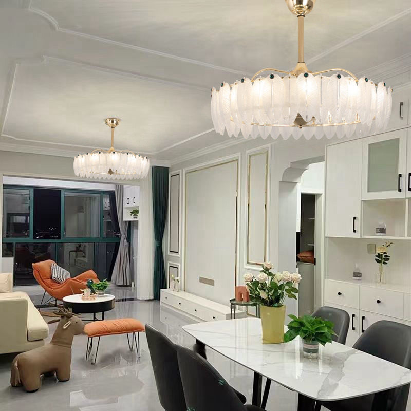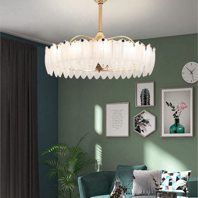 Feather Lamp Light Lavish Living Room Fan Chandelier Style Dining Room Ceiling Fan Lamp Bedroom Glass Electric Fan Chandelier Creative Personality-Taobao