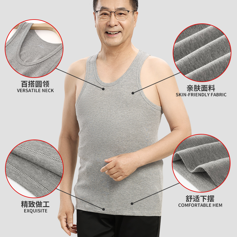 Yu one trillion Lin men's vest men's pure cotton Summer increase in sweatshirt for elderly people sweating in sweat and sweating in the bottom old man's shirt-Taobao