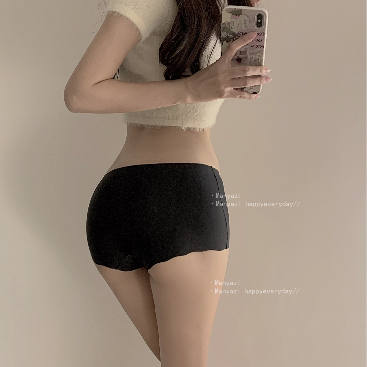 3 Dress Ice Silk Without Mark Plain Corner Briefs Female Mid-Waist Pure Cotton Antibacterial Crotch Anti-Walk Light Safety Pants Woman Four-corner Shorts-Taobao
