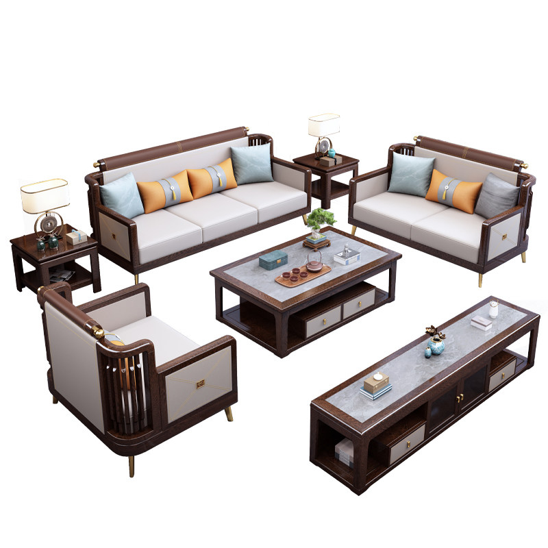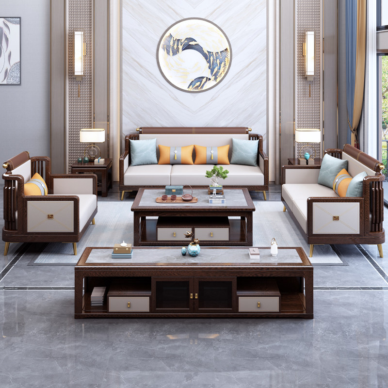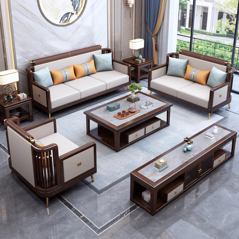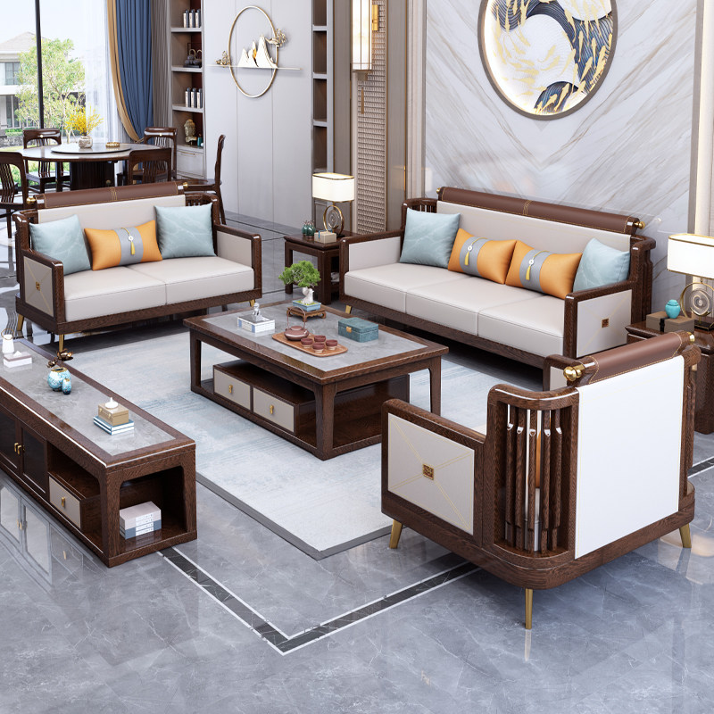 New Chinese style sofa chicken wing wood solid wood modern Chinese light luxury simple high-end living room Zen villa furniture combination