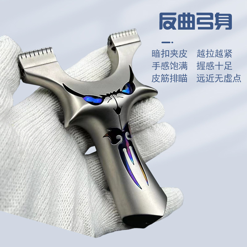 New titanium alloy Golden Dragon Teeth Slingshot Quick Pressure Concealed Button High Precision Precision Outdoor Flat Leather Bow Little Devil Ghost Face Slung-Taobao