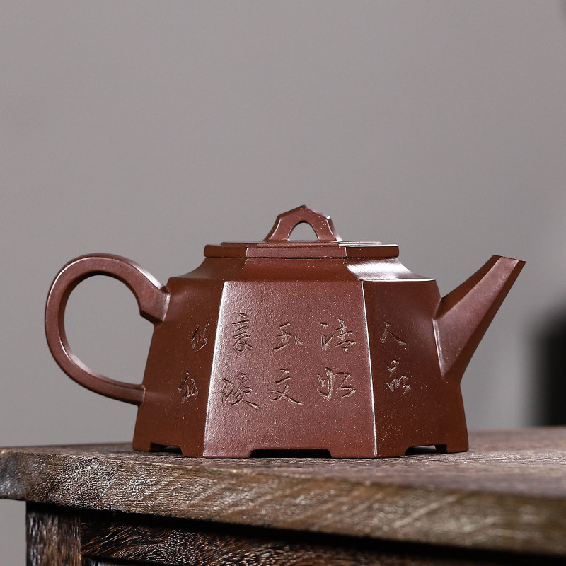 Early reflux Yixing Purple Sand Pot all handmade Shi XiaoMa Six old purple clay Admiralty Clay Pot double face carved teapot-Taobao