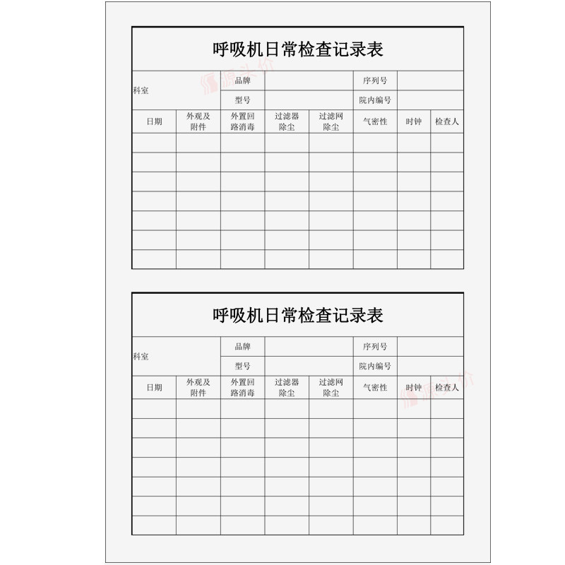 Daily inspection record sheet filtering maintenance hospital quality testing and sterilization