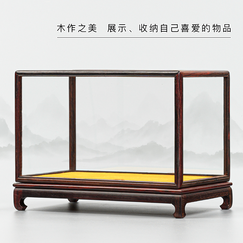 Red wood glass cover Ming style bend corner pitchers Buddhist statues Guanyin Antique Jade Purple Sandalwood Dust Cover Transparent Display Case-Taobao
