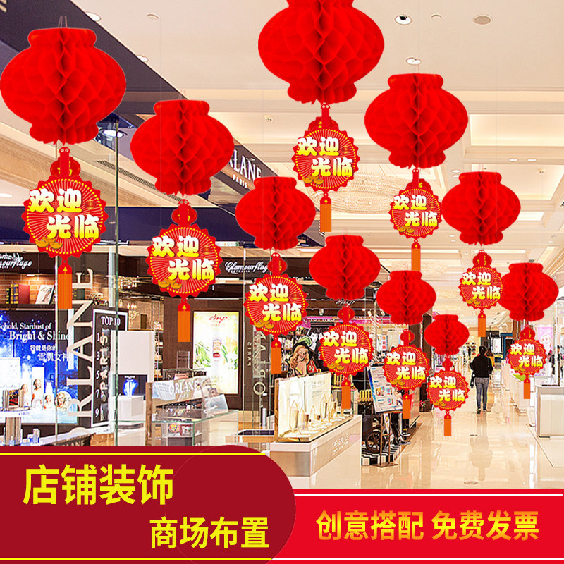 Shop opening Daji decoration hotel atmosphere anniversary shopkeeper shop mall red lantern ceiling