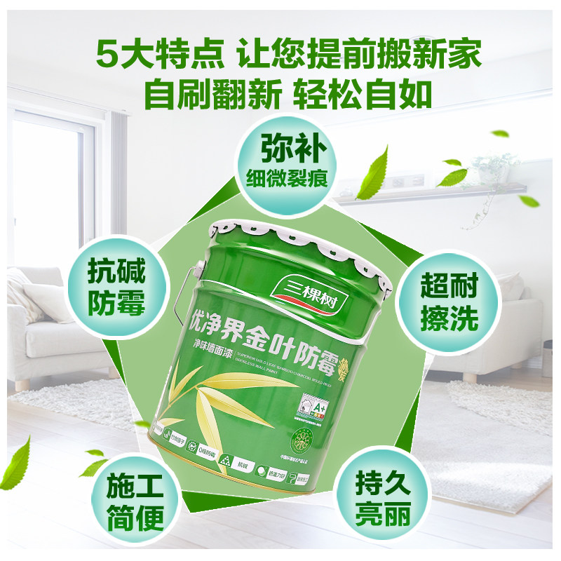 Three Trees Superior Net Community Gold Leaf Mildew Resistant Interior Wall Emulsion Paint Environmentally Friendly Matt White Indoor Wall Paint Paint Paint-Taobao