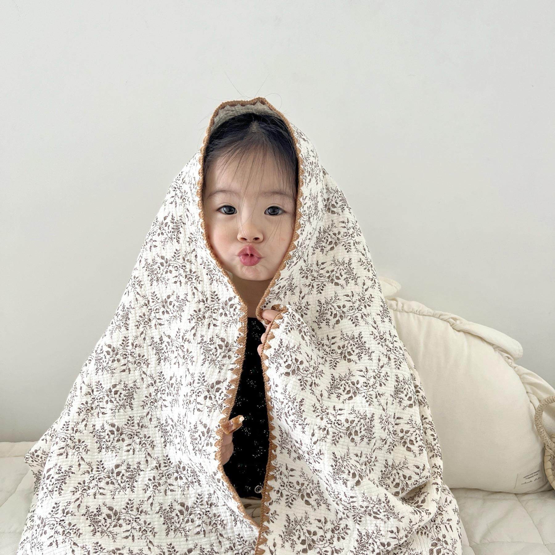 ins south Korean creamy gauze blanket three layers yarn cover blanket small red book infant small crumpled carb blanket lunch break blanket-Taobao