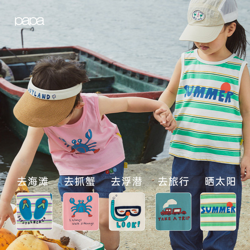 papa climbing in summer male and female baby printed vest foreign air trendy casual light thin children pure cotton blouse T-shirt-Taobao