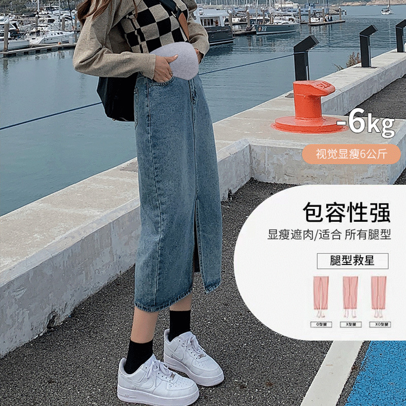 Pregnant Woman Cowboy Half Body Dress Spring Summer Style Out Casual A Character Skirt Hip Tobella Jeans Skirt Autumn Winter Open Fork Skirt-Taobao