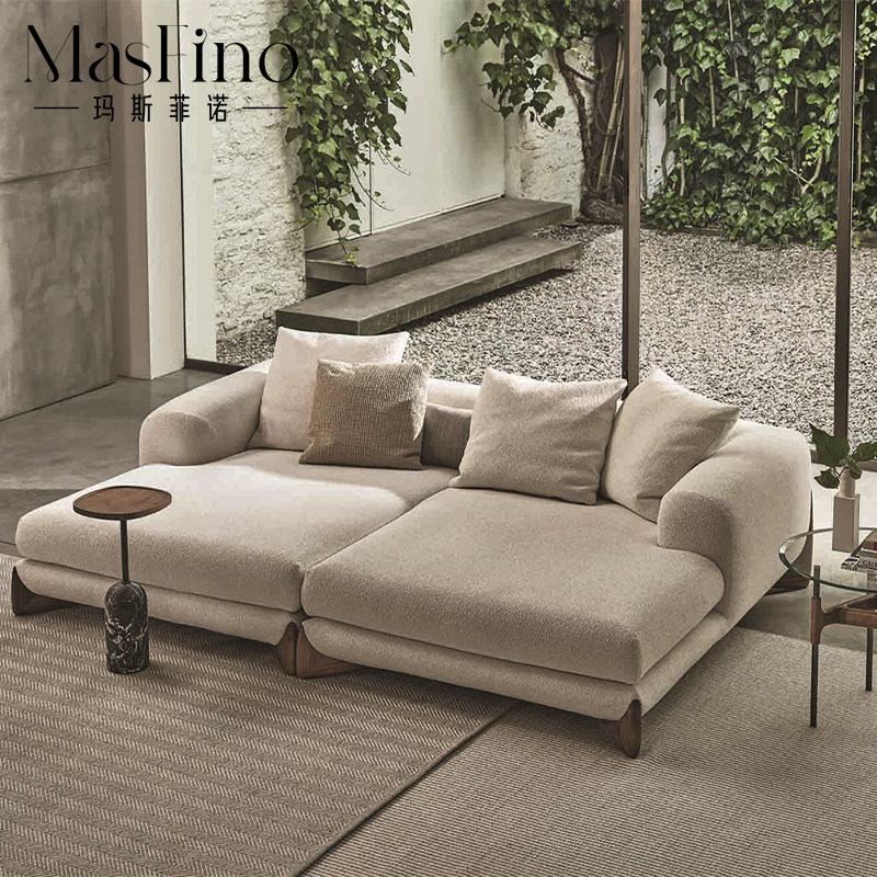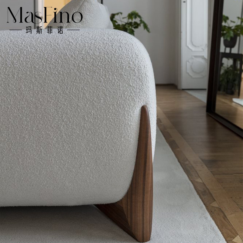 Masfino Italian Minimum Little House Solid Wood Lamb Lamb Fabric Cream Living Room Cream Features