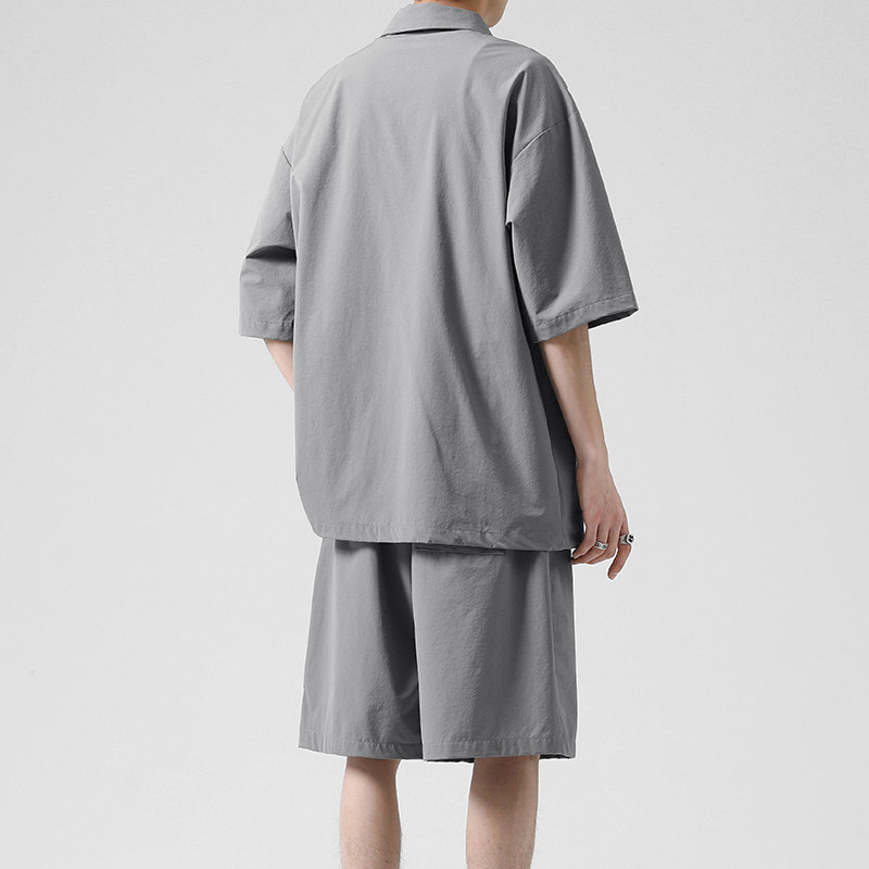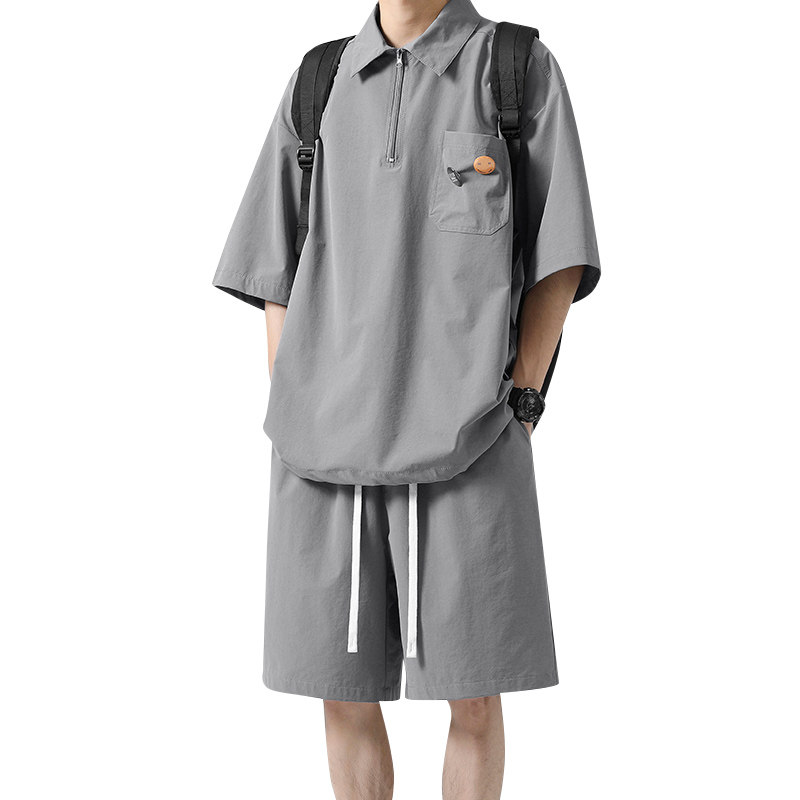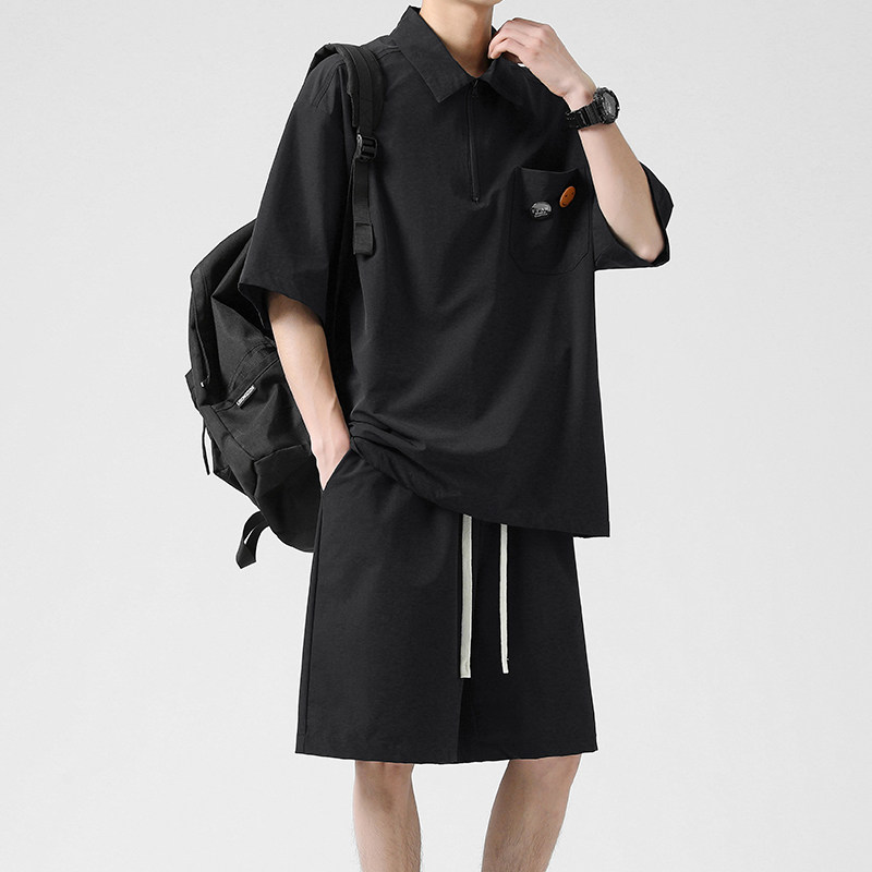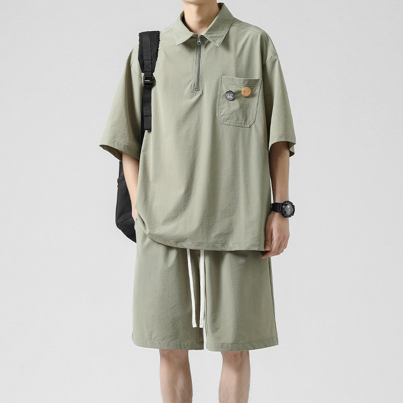 Sports suit men summer thin loose ice wire short sleeve t-shirt a whole set of leisure with handsome polo shirt