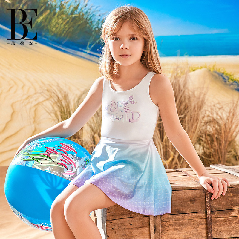 BE van der Ann 2023 new conjoined swimsuit children conservative skirt-style man fish Ji color sunscreen anti-chlorine dream skirt hem-Taobao