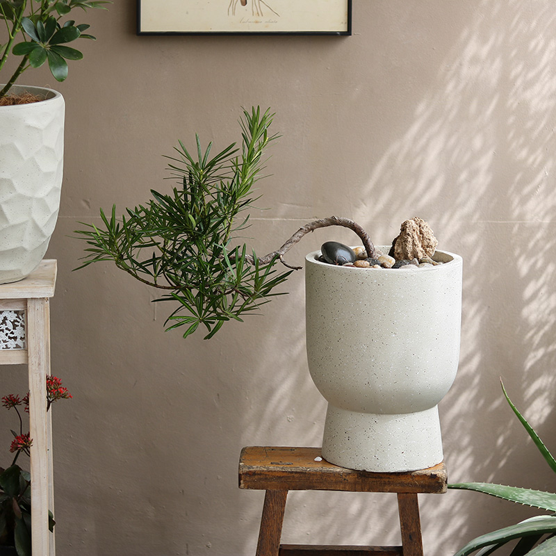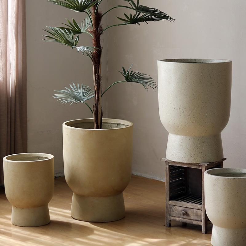 High foot cup flower pot cement basin Fat tree green implanter Magnesium Clay Basin Big Nordic Jins Joins Living Room Floor-Taobao